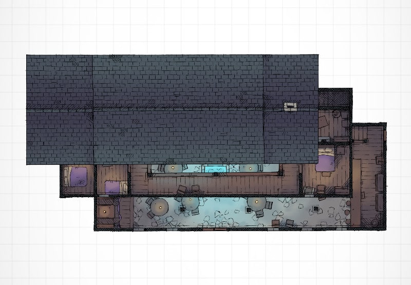 The rest of your small town will most likely surround the centerpiece. In the town’s history, the first settlers would have clustered together around the initial establishment. As more people join, the town expands outwards. This means that the centerpiece will stand as the largest building or business, provided it is not in ruins. Those that surround it will have similarly survived the town’s growth and prospered. This leaves you with a central point of interest with important landmarks clustered together. Smaller, less desirable, or simply more niche storefronts will then spread further outward from that. In terms of housing, keep in mind that many store owners may live above or behind their shop. For other locals, include residential areas away from the main road, with houses denoting their financial state.