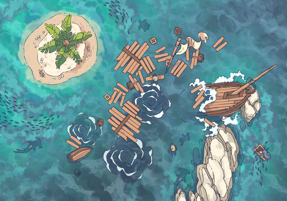Ocean Surface Assets & Shipwreck MapWhat began as some drafting for the Ocean Monster Tokens (more on that below) became this sea-themed asset pack. If you like a little clutter on your ocean waves, this is the pack for you! Ocean Surface Assets & Shipwreck Map